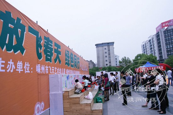 5月1日,“放飞春天,绿色同行”少儿美术作品展在市文化广场举行。不少儿童手拿画笔在现场作画,既宣传了绿色环保,又为活动增添了节日的气氛。