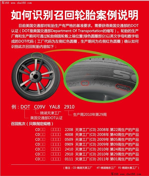 悦动轮胎的DOT码“CO”表示为天津工厂生产的轮胎