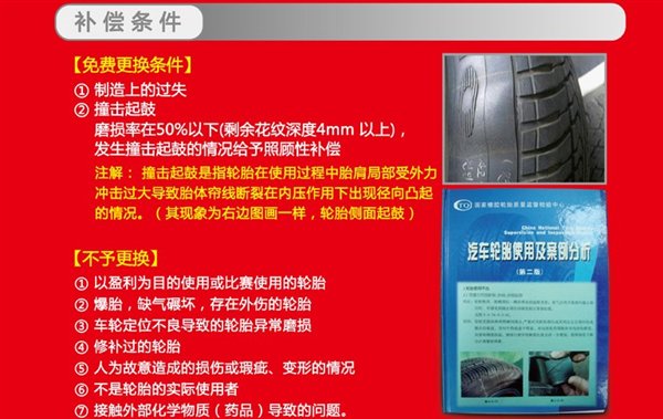 问题2:锦湖轮胎被检测后给予免费更换的情况有哪些?不予以更换的情况有哪些?