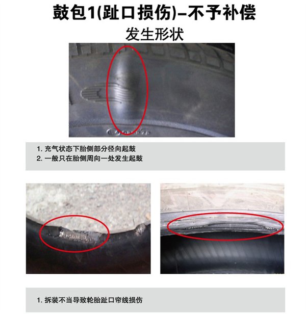 对于因拆装不当引起鼓包的轮胎,锦湖不予以补偿: