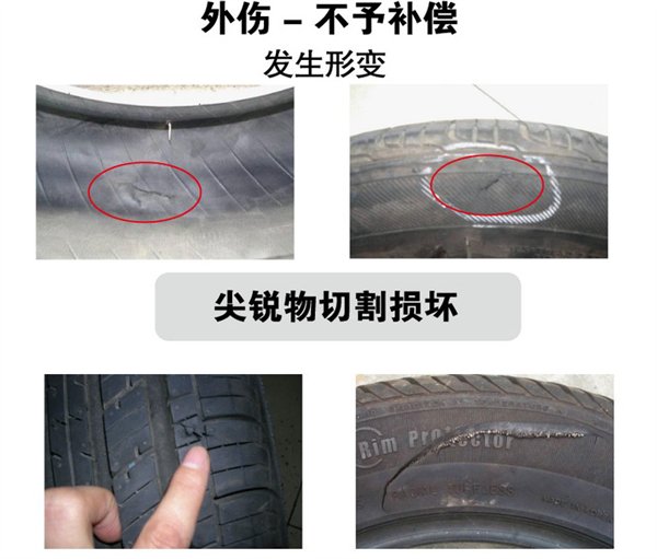 (2)对于轮胎的外伤,如尖锐物切割等原因引起的,锦湖不予以补偿: