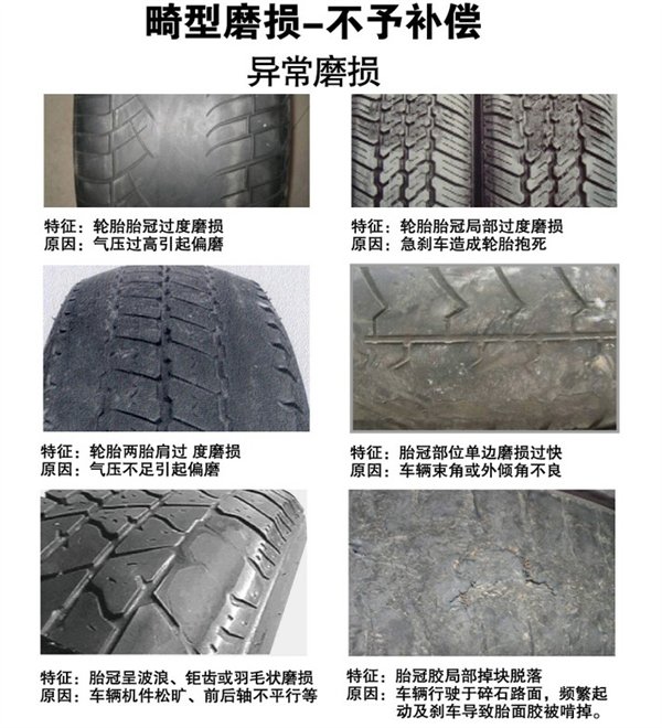 (3)对于轮胎异常磨损的情况,厂家也不予以相应补偿: