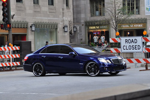 有消息称奔驰此次也会加入到变形金刚3的拍摄之中,而在现场图中我们也确实发现了应藏在悍马之后的奔驰E63 AMG。虽然蓝色的车身让他显得非常低调,但双排气尾管以及黑色轮毂还是让他的身份最终暴露。只是和很多已经亮相的主角不同,奔驰E63 AMG将会担任怎样的角色,现在还不得而知。但按照性能街车过去的经历来看,反对派中可能会有它的位置。