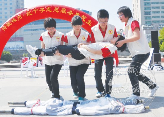昨日上午,市红十字会、市中心血库、嵊州传媒爱心公社在市文化广场联合举办了“情暖嵊州·红十字志愿服务惠民生”活动。活动内容包括志愿者服务(义诊)、红十字救护技能演示、爱心义卖、志愿者造血干细胞捐献登记、采样等。副市长夏春燕到现场指导。