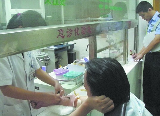 涉嫌酒驾的司机在医院抽血 王嘉供图