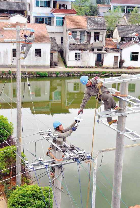 昨日,刚刚获国家电网公司“新农村电气化建设先进单位”称号的嵊州市供电局施工人员正在海拔400余米的里南乡西京山村架设电网。到目前为止,该局巳完成40余个村的电网改造。 今年我市启动新一轮农村电网改造升级工程,以解决农村低电压及电网薄弱等问题。 【来源:绍兴日版】