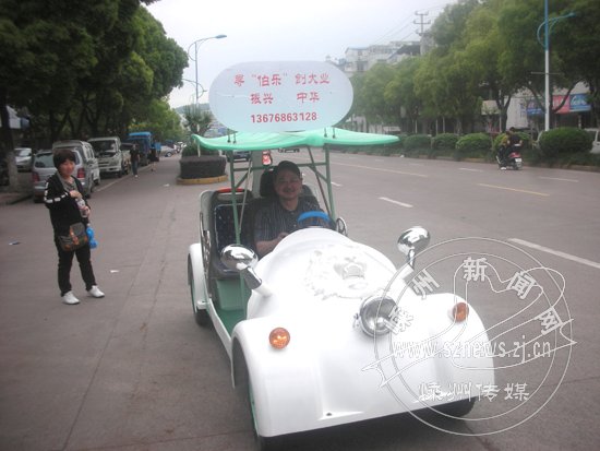 这几天街头出现了一辆很特别的电动小汽车,与2008年那辆自制的绿色小汽车相比,这辆车外观有点像老爷车,车内座位也比原来宽敞多了,白色车身同样展示着环保理念。电动小汽车的主人袁樟生自豪地告诉记者,这辆电动小汽车是他花了10个多月时间自行研制出来的,仅此一辆,所以开在街上很拉风,有不少市民还追上来问他这车是哪里买来的。