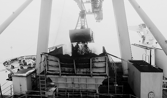 4月28日,停泊在舟山朗熹发电公司码头的一艘运煤船正在抓紧卸煤,确保今夏舟山正常发电。通讯员江勇朱武静摄