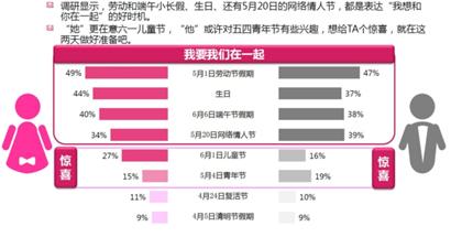 报告显示,有64%的男生经常登录交友网站,女生选择这一项的比例也高达55%。此外,男人女人都把学做饭和读书充电,看成是提高自己“受欢迎程度”的有效途径;在告白时机上,各种节假日、生日都是表达“我想和你在一起”的好时机,有意思的是,大部分女生喜爱的表白节日,还包括了“六一”儿童节。