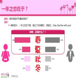 此外,郊游也是女人喜爱的约会方式,紧随其后的是看电影和演出,而一年之恋的最佳时期则在于春夏。