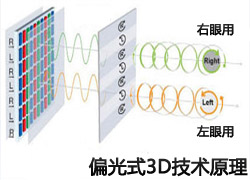 偏光式3D技术的原理和主动快门式3D技术有着很大的区别。前者主要是在液晶面板端增加一层偏光板或者偏光膜,将左右眼立体视差画面进行分离;后者主要通过顺序回放左右眼画面,再利用快门式眼镜将左右眼视差画面进行分离。