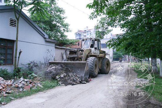 前日,市环卫处动用大型铲车和货运车辆,对森林公园东面一条道路上的建筑、生活垃圾作了一次彻底清理。