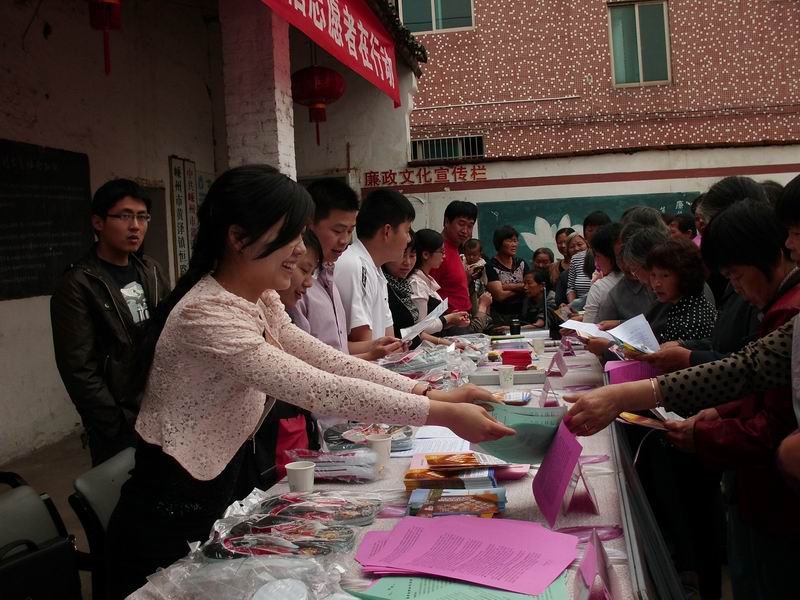 图为黄泽镇人民政府计生协会、妇联等联合组织在恒路村开展“阳光计生”宣传活动现场