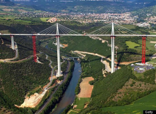 1、有“法国第一高桥”之称的米洛高架桥于2004年完工,桥塔总高343米,桥长2460米,宽32米。这座大桥的最高点比法国埃菲尔铁塔还高23米