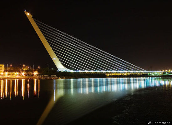 11、西班牙阿拉密洛大桥是世界上最雅观的桥梁之一,整座大桥远观犹如一把竖琴,优雅美观