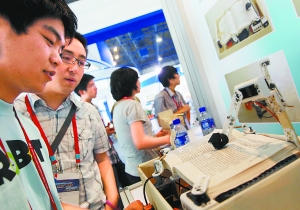 “我能把鞋放上去试试吗?”看着鞋刷上下摆动,几位观众觉得擦鞋机器人很有意思。可控试用餐机器人会喂饭菜,剪花机器人能自动修剪花草,扫树叶机器人可以扫起落叶放入垃圾箱,这5个机器人是北京林业大学“开拓者机器人协会”的同学制作的,虽然设计有些稚嫩,还是很吸引观众的眼球。(记者王飞雁)