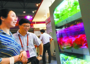 在中关村展区,鲜嫩可人的蔬菜吸引了众人的眼球。蔬菜长起一茬需要多长时间?水培蔬菜真的拿来就能吃吗?这台机器卖多少钱?围观者连珠炮似的问题,让北京京鹏环球科技股份有限公司三名工作人员应接不暇。