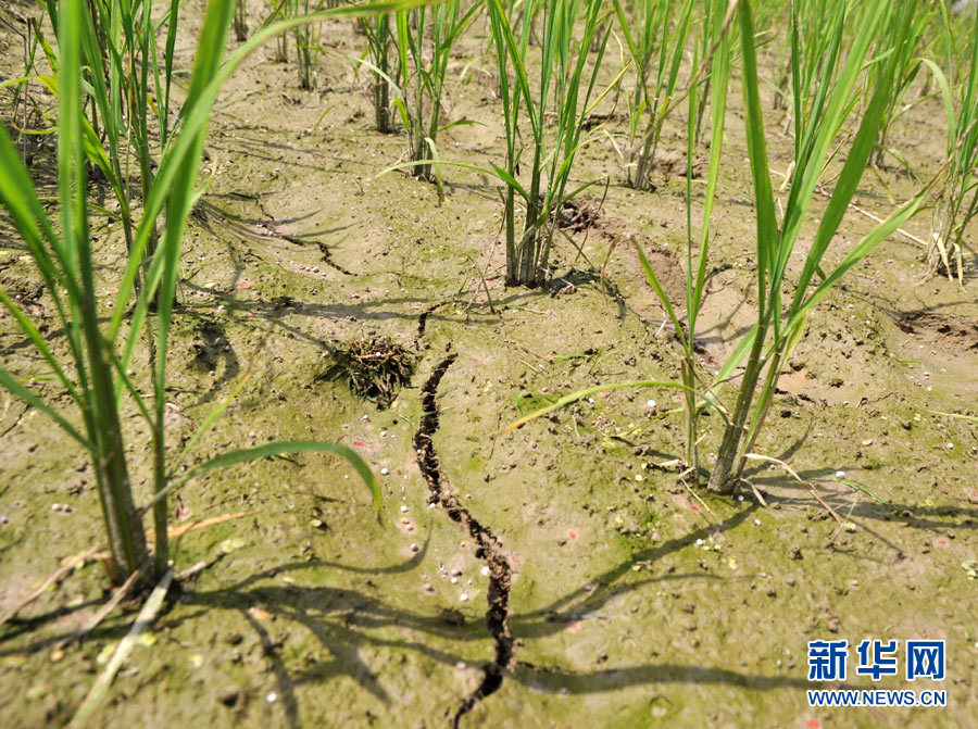 5月19日,在江西省宜春市袁州区彬江镇大浦村,受旱的早稻田裂缝达四指宽。