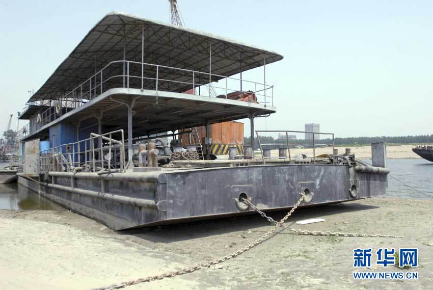 受持续干旱影响,长江支流汉江水位持续下降,其武汉段水位逼近枯水线。 新华社发
