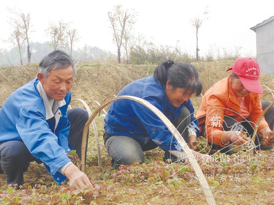 今年36岁的王云龙是北漳镇人,从事花木生产已近二十年。去年5月,他在清水塘村承包了50多亩土地,种上了垂丝海棠、红枫等花木;43岁的张生华是清水塘村人,去年年初,也在家乡办起了花木休闲基地,目前,还有一些外出的村民正在陆续回村洽谈承包事宜。花木大户的进入,也让清水塘村的闲散劳动力找到了赚钱的路子,图为村民在花木大户的田头劳动。