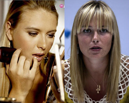 莎娃是否可称作美女,这个问题一直是“莎蜜帮”和“莎黑帮”争论不休的永恒话题。也难怪,有上面这个对比照作为实证,恐怕任何中立的人也难以对她外貌给予一个绝对而单一的评价。身家过亿的网坛第一女星、集万千宠爱与一身的万人迷、广告红人,素面朝天的时候竟是给人这般几乎恐怖的感觉:硕大的青春痘,因为化脓而留下的疤痕,还有那些用什么护肤品也没法根治的那恼人的雀斑……也许真应了那句话,世间只有不修边幅不肯花时间打扮的“中性女”或懒女,而没有肯花时间精力打扮还不美的丑女。