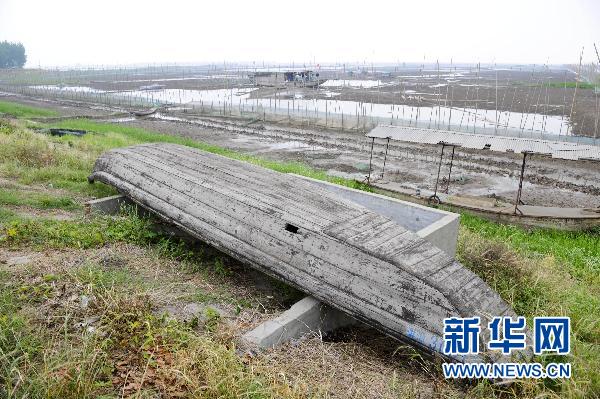 一艘渔船被翻过来放在洪湖边(5月24日摄)。