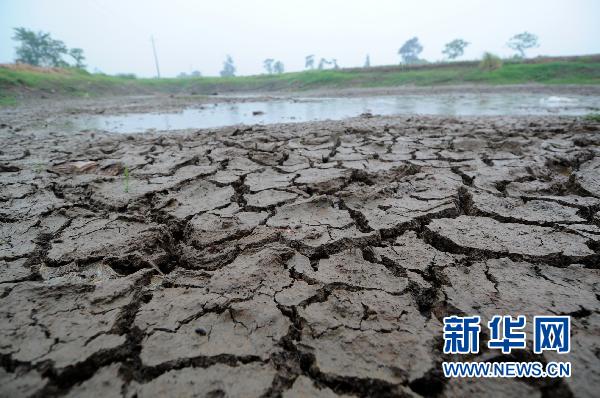 这是江西新建县大塘坪乡光华村一处干涸的池塘。尽管21日至24日出现一次降雨过程,但旱情仍在持续(5月22日摄)。往年的四五月份,长江中下游正紧张地防汛。但当前,湖北、江西、湖南等河流、湖泊众多的省份却出现严重旱情。