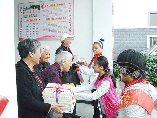 “爷爷奶奶,我们给你们送书来了!”