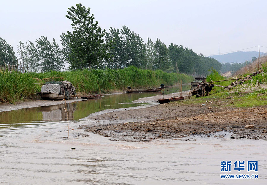5月26日,盱眙县城附近淮河的一条支线河道水位极低、河床裸露。近来,地处淮河下游的江苏省盱眙县遭遇罕见旱情。5月26日,淮河盱眙段水位为12.18米,低于12.5米的最低通航水位标准,大部分支线航道已基本断航。因干旱少雨,全县水库塘坝等水利工程蓄水量仅相当于常年同期的31%,农作物受旱面积达100万亩。目前,该县正采取引水调水等多种措施,全力打好抗旱攻坚战。新华社记者 孙参 摄