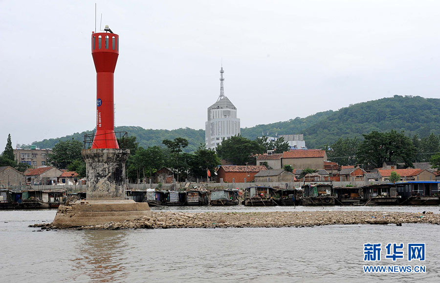 5月26日,盱眙县城淮河上一座航标的基座已完全露出水面。近来,地处淮河下游的江苏省盱眙县遭遇罕见旱情。5月26日,淮河盱眙段水位为12.18米,低于12.5米的最低通航水位标准,大部分支线航道已基本断航。因干旱少雨,全县水库塘坝等水利工程蓄水量仅相当于常年同期的31%,农作物受旱面积达100万亩。目前,该县正采取引水调水等多种措施,全力打好抗旱攻坚战。新华社记者 孙参 摄