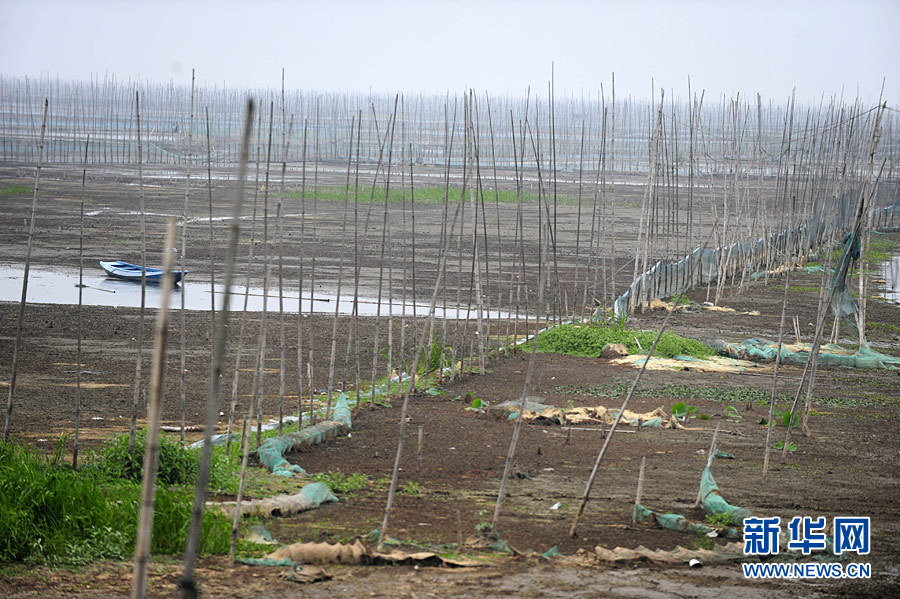 5月24日,洪湖湖底养鱼的围网已经裸露出来。5月24日下午,渔民史才中驶着小船在洪湖岸边的河岔里沿途卖鱼。大大小小的鱼堆满了鱼舱,却不见他有一丝笑容。他家养了100多亩水面的鱼如今因干旱全部死亡,他把死鱼捞起来,趁着还没发臭,一船一船地拖到岸边,卖给别人打碎了当饲料,以减少一点损失。连接洪湖的河岔里不时有三三两两的小船驶过,载着满仓的鱼,船主像史才中一样在吆喝着卖死鱼。持续的干旱造成3000多户以洪湖为家的渔民生活受困。60岁的舒振家与人合伙在洪湖里养了800多亩水面的螃蟹,如今他家的水面大部分干涸了,亏损情况还无法计算。5家人共用的一艘水泥船上现在吃水也变困难了,他们就在船边的湖底挖了一个坑存水,水打上来后,每桶水里放个净水丸,做饭洗衣都用它。 “洪湖水,浪打浪,洪湖岸边是家乡。”一句脍炙人口的歌词描绘出“鱼米之乡”洪湖昔日怡人景象。而如今,洪湖正遭遇70年一遇干旱,50多万亩的水面减少了三分之一,湖水最深处也只有30多厘米。湖底大面积干涸开裂,只剩下渔民养鱼的围网矗立在那。据洪湖湿地自然保护区管理局介绍,洪湖生态湿地恢复至少需要10年时间。新华社记者 郝同前 摄