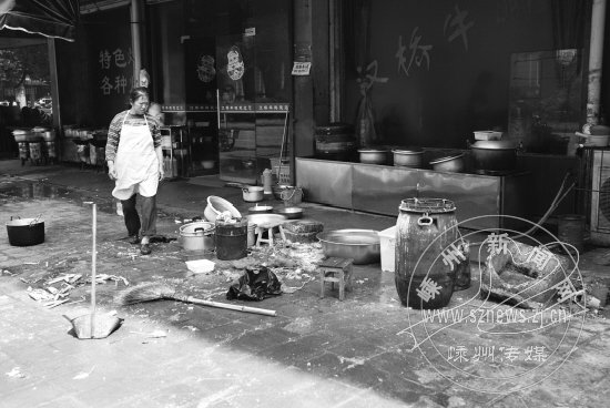这样的现象,记者也在越秀路上看到了。越秀路官河路口的一家豆腐馒头店,不仅在人行道上洗菜洗碗,还在人行道上支起了蒸笼,直接把豆腐馒头的“生产线”延伸到了店外。