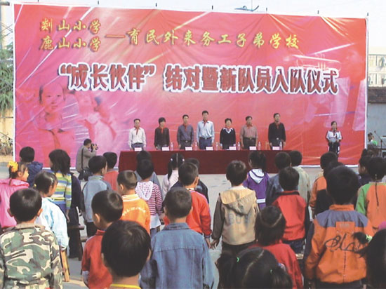 剡山小学、鹿山小学与育民外来务工子弟学校结对仪式