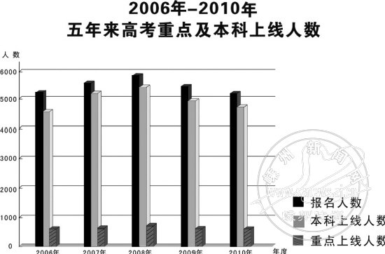 2008年是我市高考成绩较好的一年,在“十一五”期间,我市的基础教育,特别是高考质量始终站立在全省上游位置。