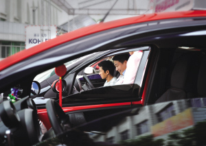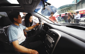 市民何先生在车展现场转来转去,而且他会坐进每一辆看中的汽车,比比头顶的空间、比比膝盖和车座前的距离,样子很是专业。“我们家里人都比较高大,我爸爸有190厘米高,我要选一辆让老头子坐着不会顶到头的车。”