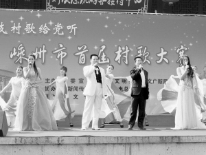 昨天下午,嵊州举行“唱支村歌给党听”——首届村歌大赛。来自该市15个村的代表队参加了比赛。近年来,嵊州广大农民参与“种文化”的渠道和内涵不断丰富,不少村在经常性开展文娱活动的同时,也开始尝试自己创作各类具有浓郁乡土气息的作品,村歌应运而生。这些村歌,大多是各村自己创作或请人创作,歌词生动亲切,创作的作品真实反映了在党的领导下农村发生的巨大变化,为广大村民所喜欢。当日,嵊州农民才艺总决赛同时举行。【来源:绍兴日报】