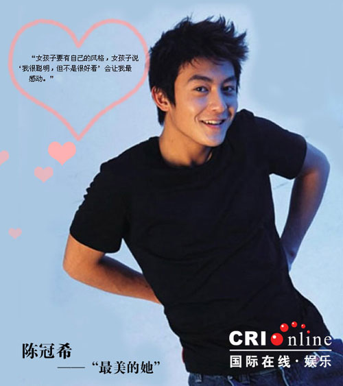 个性十足的陈冠希,出道前曾经与五位三种不同肤色的美女交往,其中包括两次“姐弟恋”,出道以来更是是非不断,与众多女明星传出绯闻。陈冠希表示最欣赏睿智的女孩子,他更喜欢那种有自己想法、敢于表达、勇于争取的女生。“女孩子要有自己的风格,女孩子说‘我很聪明,但不是很好看’会让我最感动。”