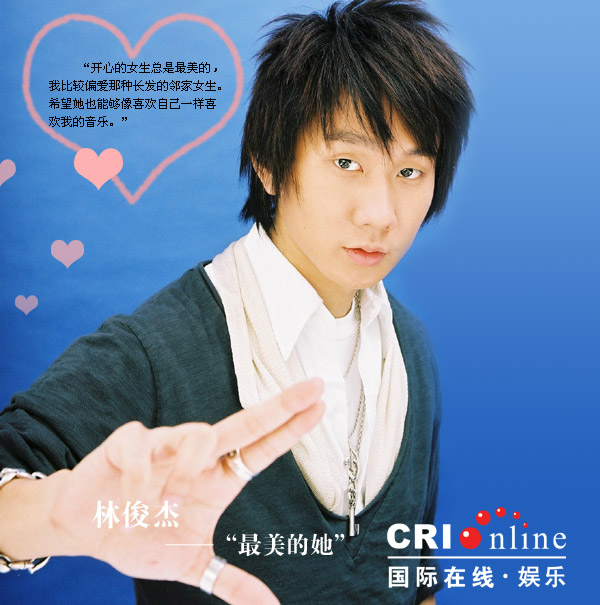 林俊杰一贯以亲和的形象迷倒万千青春少女。帅气可爱的他在说到“最美的她”时,希望“她”也能够像喜欢自己一样喜欢他的音乐,“开心的女生总是最美的,我比较偏爱那种长发的邻家女生。”林俊杰表示不排斥找圈中人做女友,对于早前传出和师妹金莎及徐若瑄的绯闻,林俊杰却笑着表示均为好友。