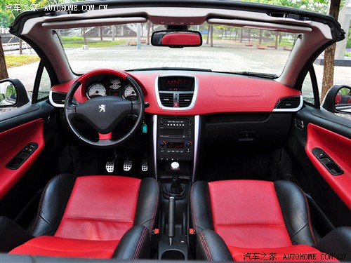 内饰方面,207CC的内饰做工非常精细,全真皮包覆的仪表台。方向盘和座椅的质感也非常豪华,仪表采用了标致的传统设计,相比之前我们介绍的炮筒式仪表,207CC的仪表运动感并不强烈。
