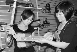 嵊州市长乐镇长乐功能工业区的州祺瑞工贸有限公司是滑板、旱冰鞋等儿童玩具专业生产加工的私营有限责任公司,目前已成为国际市场儿童玩具的生产基地之一。据该公司负责人介绍,今年该公司出口国外的儿童玩具大幅增长,订单已排至年底,仅上个月,出口已达3万套,创下历史之最。图为昨日,该公司技术人员正在查看一新款运动类儿童玩具。【来源:天天商报】