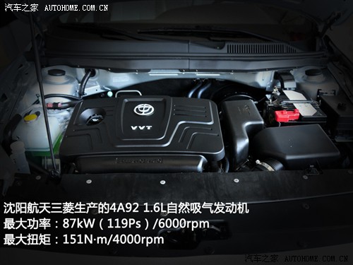 1.6L车型搭载的是4A92型号的发动机,最大功率达到了87kW(119马力)/6000rpm,最大扭矩为151N·m/4000rpm。变速器采用的是5MT变速器。最高车速达到了185km/h。