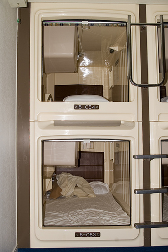相比起房间,胶囊旅馆提供的更像是一个胶囊。客人入住一个胶囊单元时,旅馆会提供一个包含浴室的公共休息间。由强化塑料制成的胶囊,包含了所有需要的东西,像电视、收音机、电灯和闹钟。