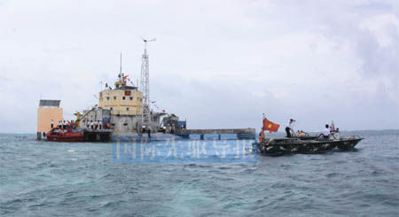 越南海军船只向越方侵占的南沙岛礁运送补给。来源:国际先驱导报