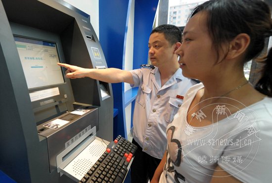 日前,市国税局自助办税终端机(ARM)正式投入使用。自助办税终端机集发票发售、抄税、申报等业务于一体,大大方便了纳税人。图为市国税局工作人员正协助一位首次使用该机的纳税人办理业务。