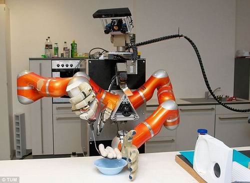 詹姆斯是一款PR2机器人,是由美国威罗加格公司制造的,该机器人可避开障碍物,往返于大门和煎锅之间。近日,詹姆斯与罗西“相识”,罗西是由德国慕尼黑工业大学研制的一款机器人,它将帮助推广普及个性化机器人设计。