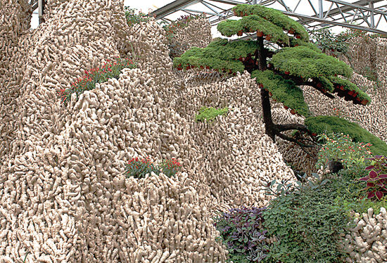 七彩椒铆足了劲儿展现“姿色”;五彩西红柿也不甘示弱,红的,粉的,让人目不暇接;小黄帝辣椒、变色白茄、人参果、琳琅满目的奇异水果;还有那造型奇特、令人赏心悦目的园艺设计……这一切,无不展示了科技农业的风采和农民致富、绿色环保的光明前景。