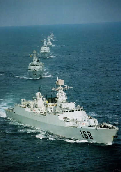 资料图:中国海军舰队进行海上作战演练