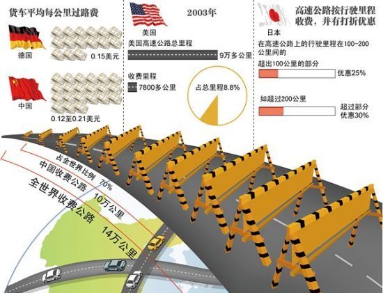 中国物流与采购联合会副会长戴定一说,2010年,中国货物运输总量75%是由公路承担的,过路过桥费占到了运输成本的20%到30%。根据中国物流信息中心提供的数据,以物流费用率(物流费用与物流物品价值之间的比值)来说,2010年,我国物流费用率是9.9%,日本只有4.8%。
