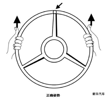 特别注意:驾驶时拇指要向上,而且要位于方向盘的外侧