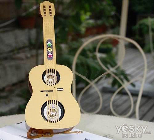 巧妙地把吉他的相位设计成为音箱的单元。一个侧放的姿势呈一定的角度,便于声音的传播。